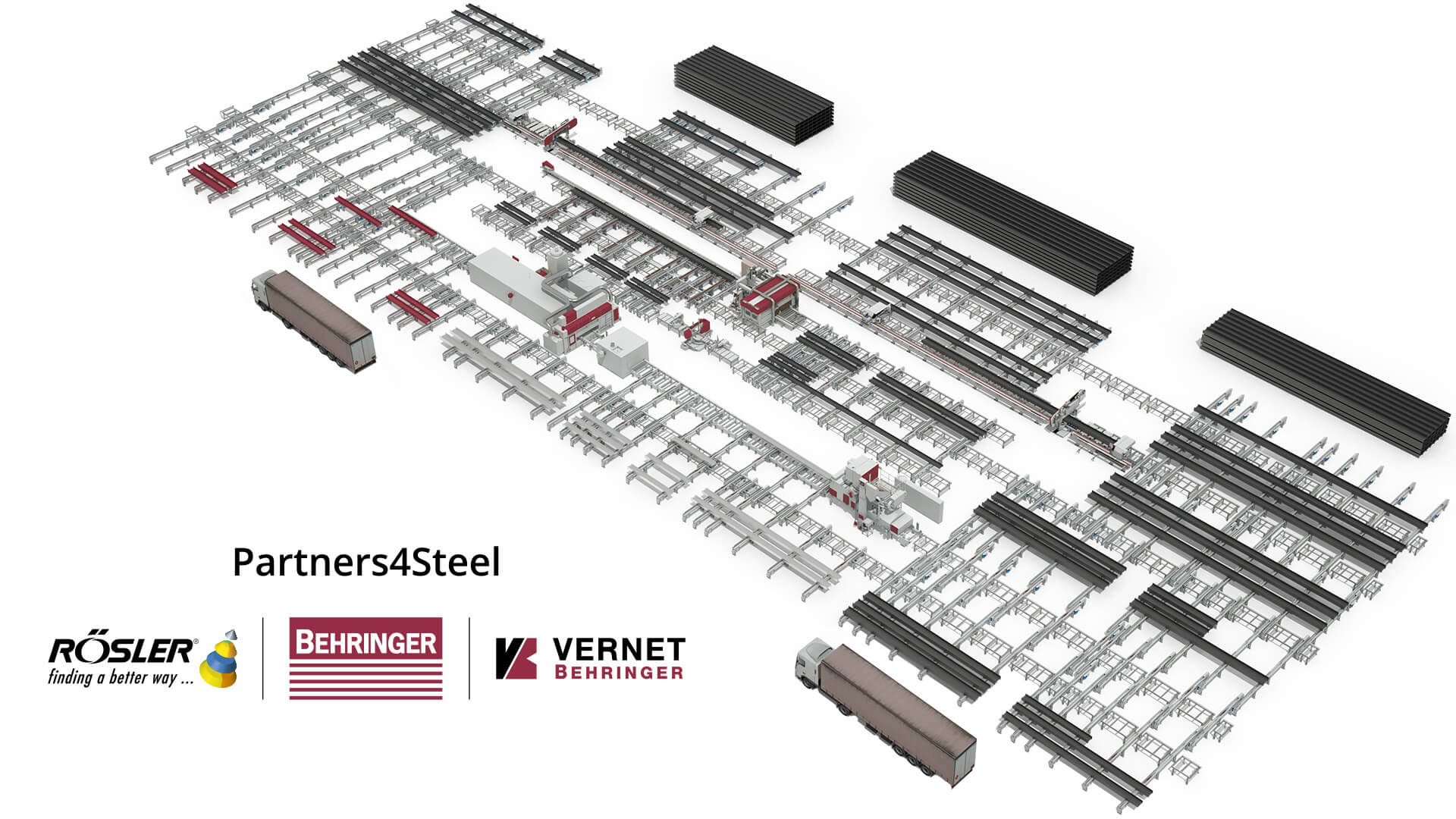Partners4Steel (P4S) est le partenariat technologique entre Behringer, Vernet Behringer et Rösler. Ensemble, nous fournissons des lignes de production personnalisées et entièrement intégrées pour le traitement de l'acier profilé - du sciage au perçage/broyage/marquage au blasting & à la préservation. Cela signifie que vous bénéficiez d'une chaîne de responsabilité, de flux de matières optimisés et de zéro problème d'interface.